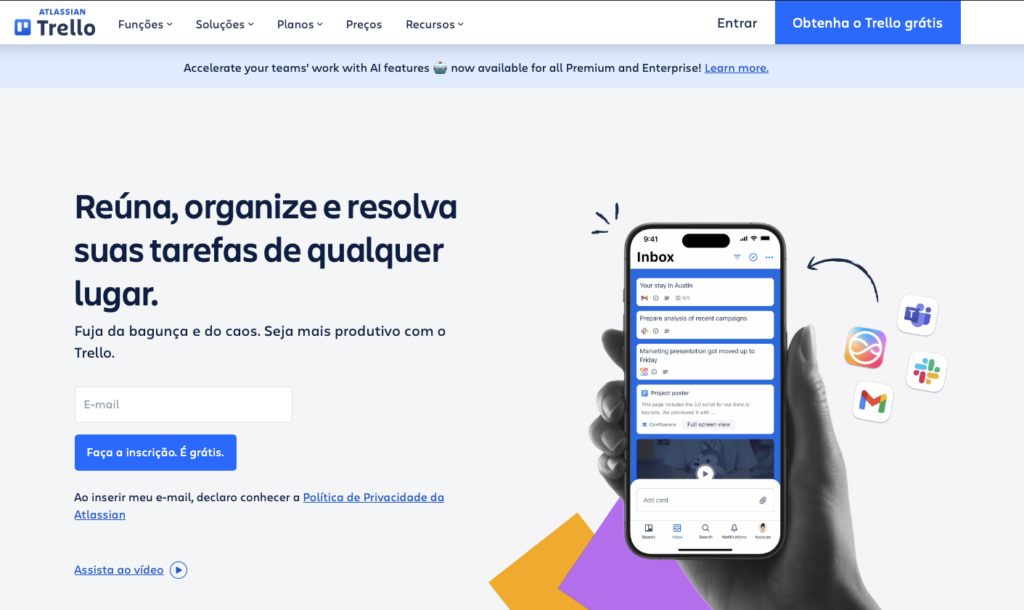 1. Para utilizar o Trello, o primeiro passo é acessar o site oficial: Trello.