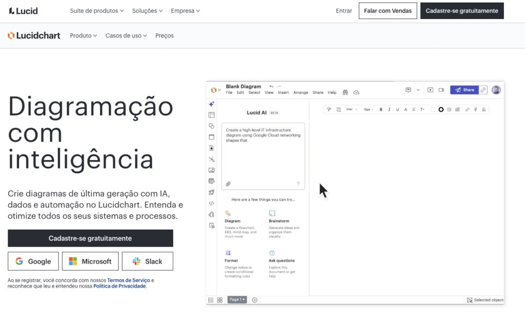 1. Para utilizar o Lucidchart, acesse o site oficial: Lucidchart.