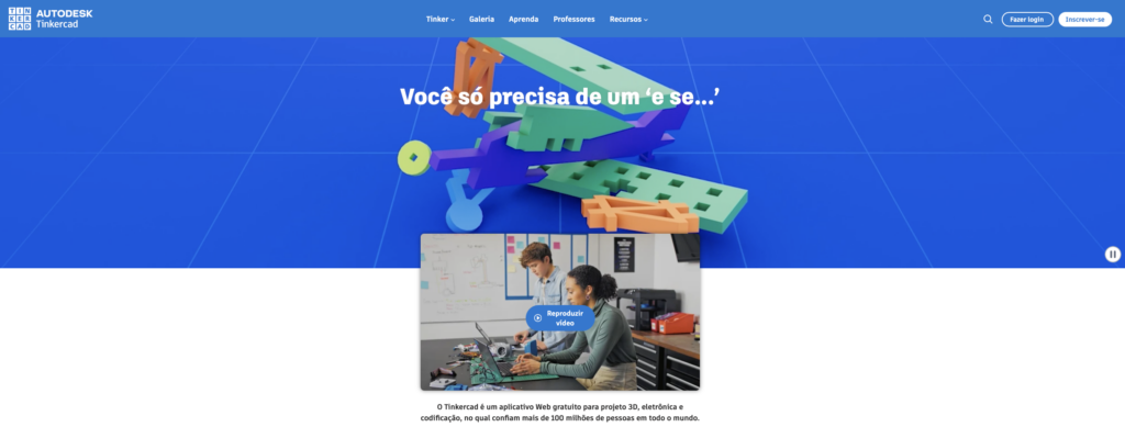 O Tinkercad é uma plataforma online que possibilita ao aluno montar e testar circuitos digitais e eletrônicos, utilizando componentes como portas lógicas, LEDs, resistores, botões, displays e outros elementos fundamentais no estudo de sistemas digitais.